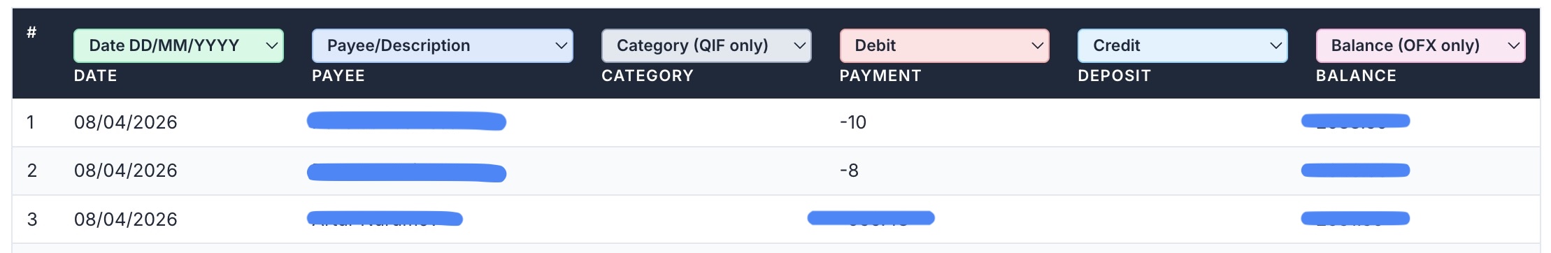 OFX output